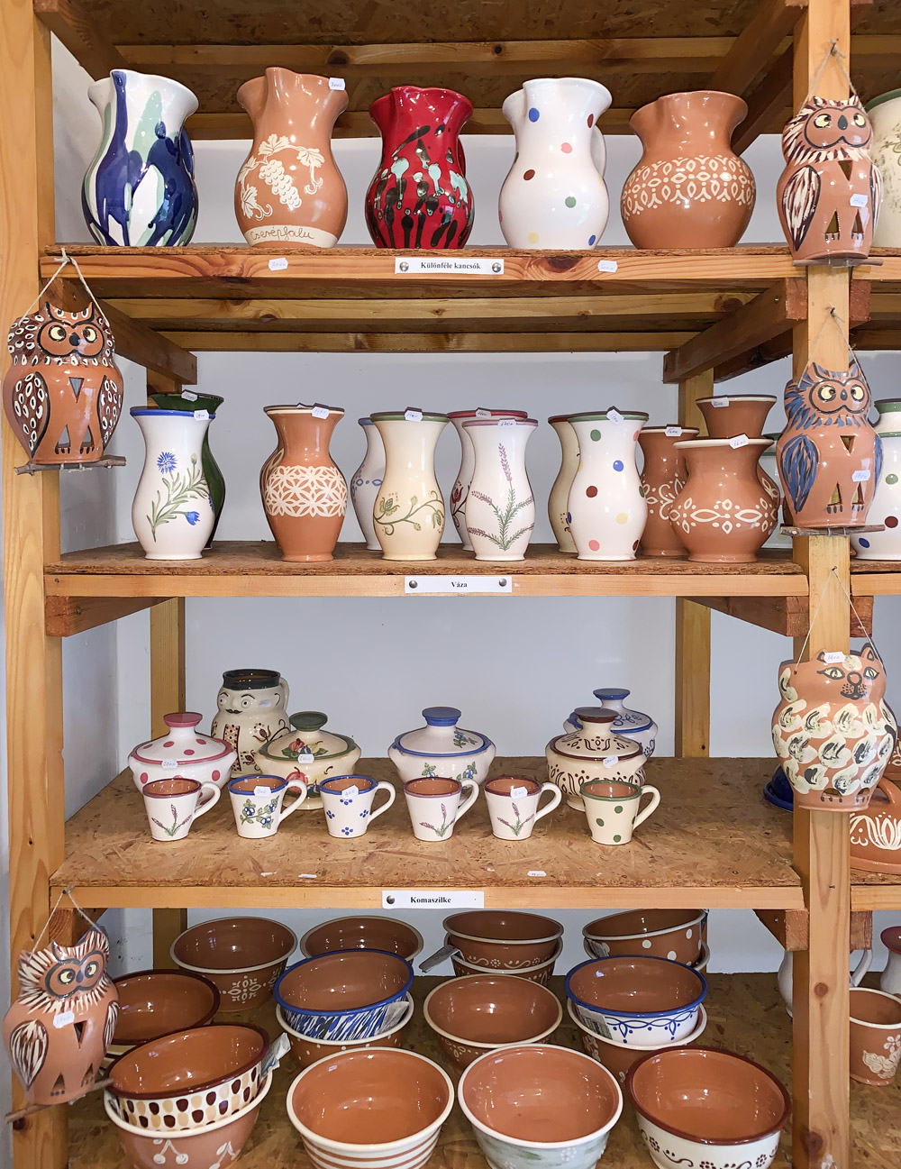 A népi fazekasság hagyományos termékein túl a mai kort jellemző kerámia tárgyak is megtalálhatók. Vásárolhatók különböző készletek, fűszertartók, szilkék, kancsók, hagyma és fokhagymatartók, illatlámpák, méztartók, vázák, sörös kupák, bórhűtők, gyümölcstartók, kerámiacsengők és képek, vajtartók, natúr metszett és festett kaspók, többféle tál és tányér, gyertyatartók, padlóvázák, a község nevével feliratozott emléktárgyak és sok minden más.